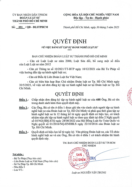 QUYẾT ĐỊNH VỀ VIỆC TẬP SỰ HÀNH NGHỀ LUẬT SƯ -ĐỢT 44