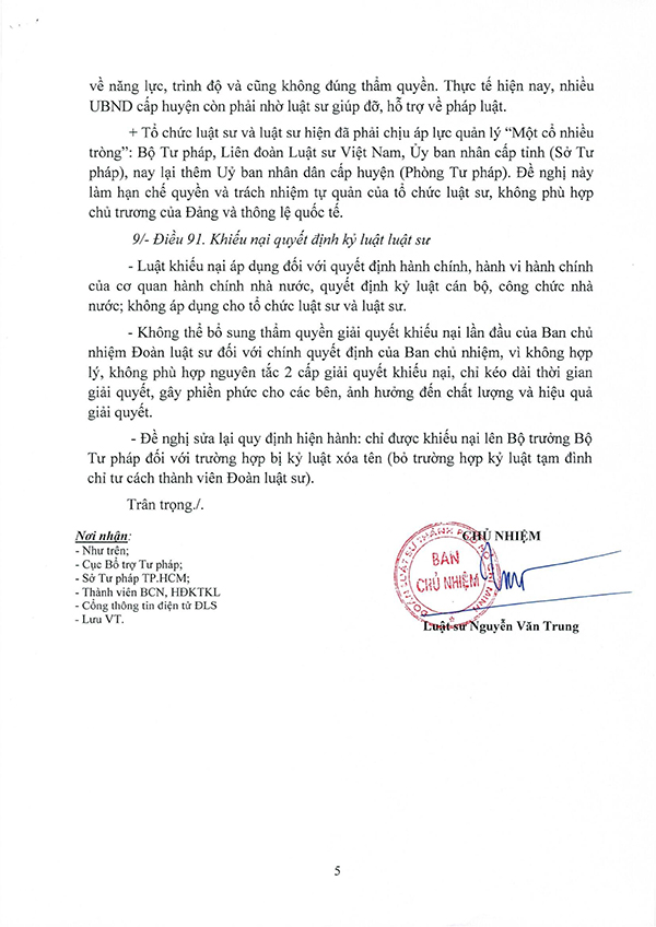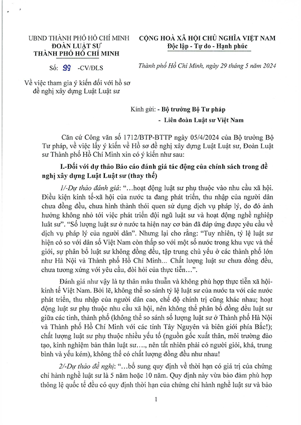 ĐOÀN LUẬT SƯ THÀNH PHỐ HỒ CHÍ MINH: VỀ VIỆC THAM GIA Ý KIẾN ĐỐI VỚI HỒ SƠ ĐỀ NGHỊ XÂY DỰNG LUẬT LUẬT SƯ