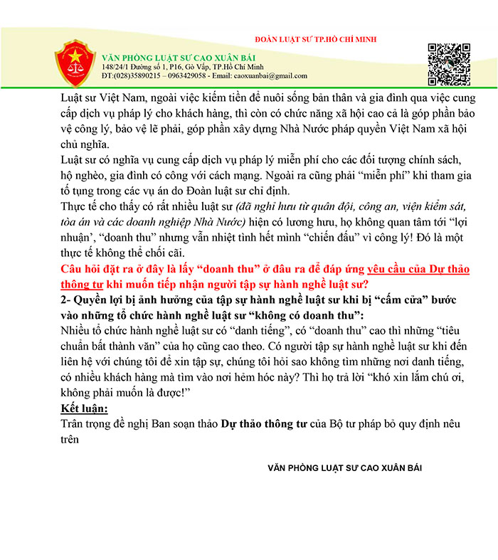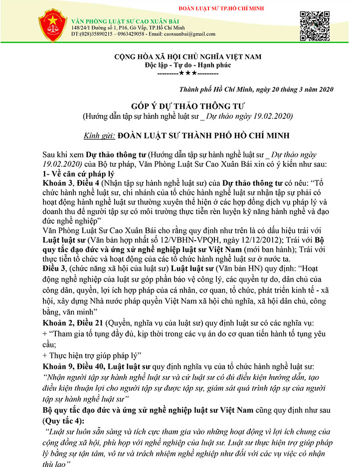 GÓP Ý DỰ THẢO THÔNG TƯ (Hướng dẫn tập sự hành nghề luật sư _ Dự thảo ngày 19.02.2020)