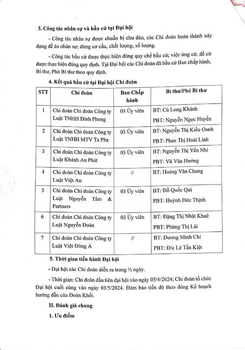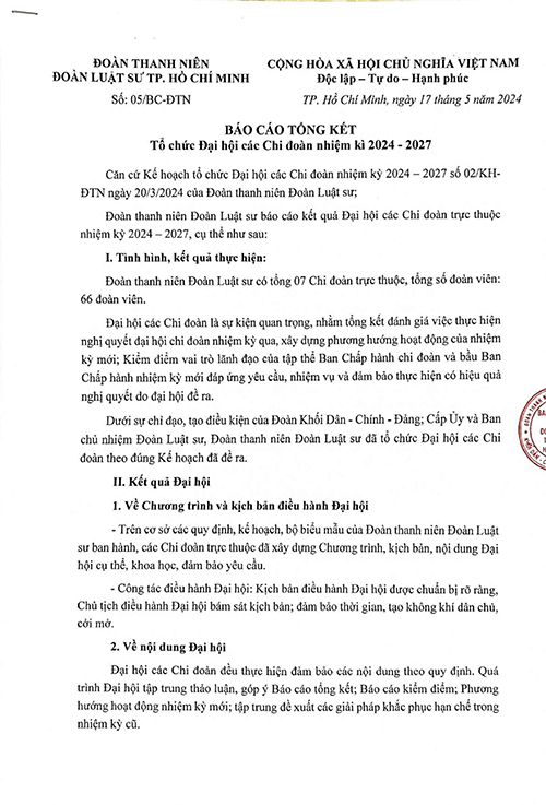 ĐOÀN THANH NIÊN ĐOÀN LUẬT SƯ TP. HỒ CHÍ MINH: BÁO CÁO TỔNG KẾT TỔ CHỨC ĐẠI HỘI CÁC CHI ĐOÀN NHIỆM KỲ 2024-2027