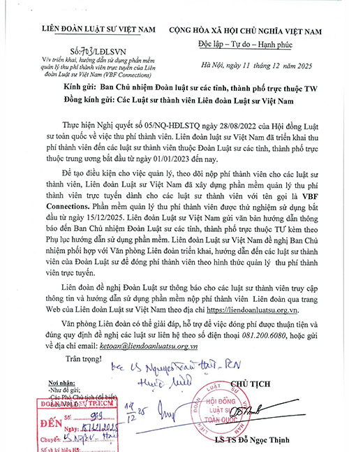 THÔNG BÁO VIỆC CÔNG KHAI DANH SÁCH CÁC LUẬT SƯ CHƯA THỰC HIỆN NGHĨA VỤ NỘP PHÍ THÀNH VIÊN