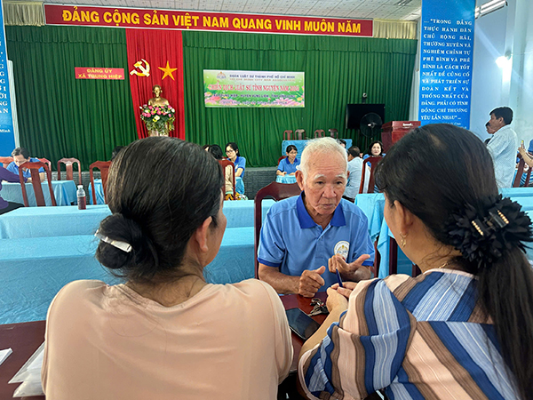 Tại tỉnh Bến Tre, Đoàn đã tuyên truyền, tư vấn pháp luật cho người dân ở xã Long Thới và xã Hòa Nghĩa cùng thuộc huyện Chợ Lách. Người dân của hai xã Hòa Nghĩa, Long Thới đã được nghe các luật sư tư vấn, tuyên truyền 4 nhóm pháp luật: Pháp luật về lừa đảo trên không gian mạng, những điểm mới của Luật Đất đai 2024, pháp luật về xây dựng và pháp luật dân sự về thừa kế, vay tài sản…